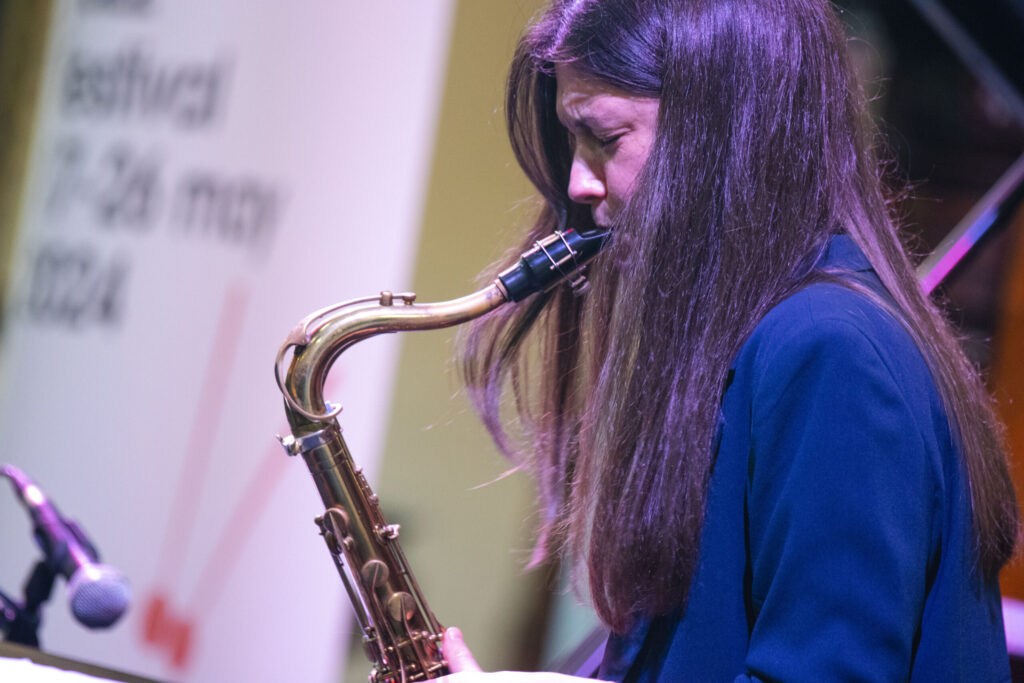 Saxophonist and composer Trish Clowes leads her quartet MY IRIS, with Chris Montague (guitar), Ross Stanley (piano/Hammond organ), and Joel Barford (drums).